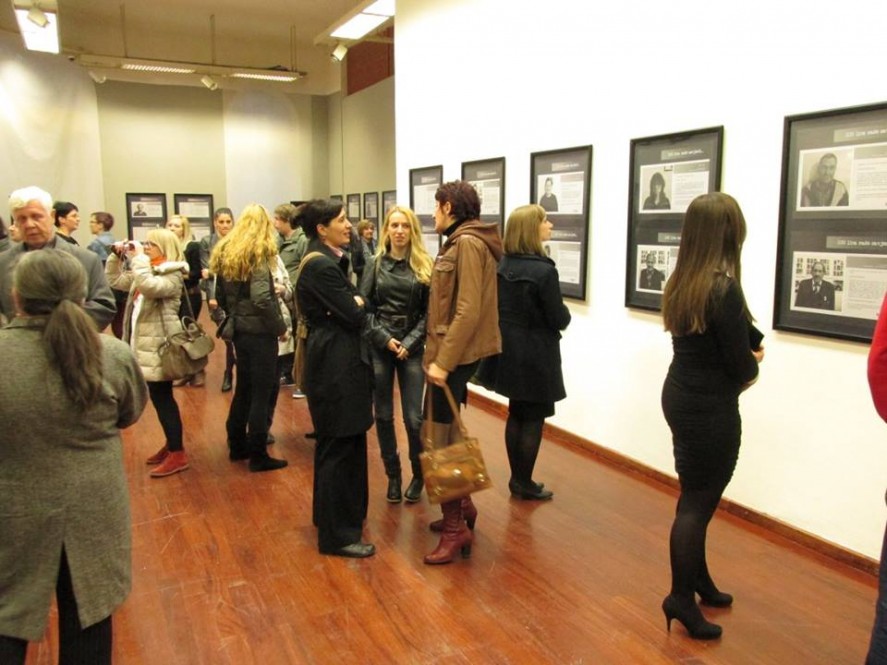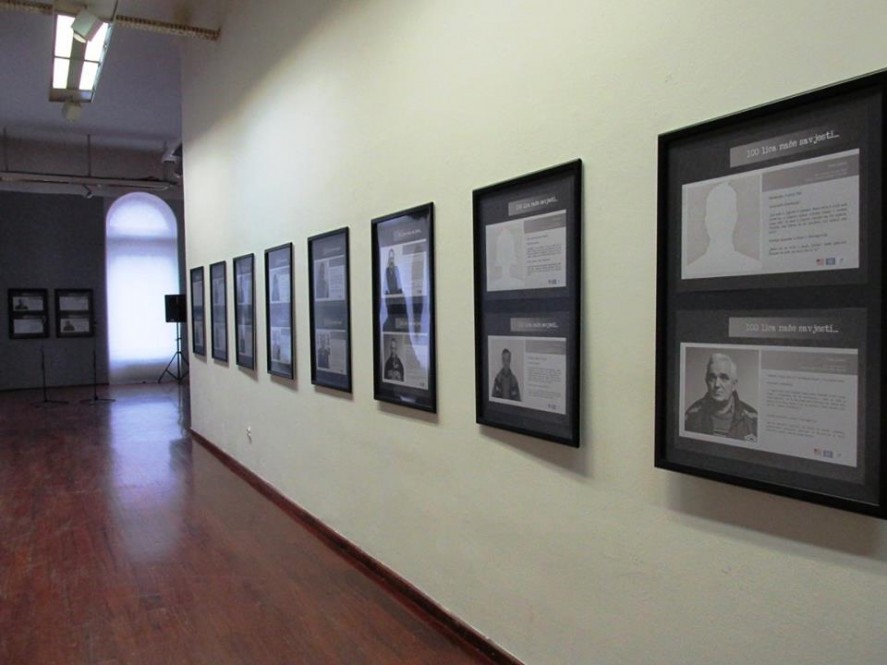 Izložba pod nazivom „100 lica naše savjesti“ o civilnim žrtvama rata i kulturi sjećanja postavljena je od 31. marta do 11. aprila 2015. godine u Umjetničkoj galeriji Bosne i Hercegovine.